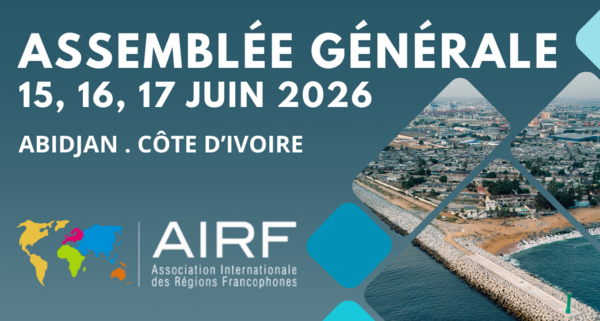 L'Association internationale des Régions francophones (AIRF) organise son Assemblée générale 2026 et une grande Rencontre économique francophone, les 15, 16, 17 juin prochain à Abidjan (Côte d'Ivoire), à l'invitation de l'Association des Régions et Districts de Côte d'Ivoire (ARDCI).