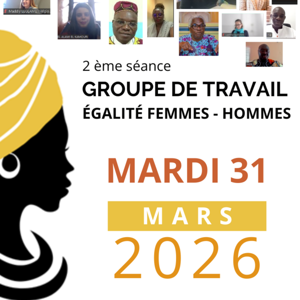 La prochaine réunion du groupe de travail égalité femmes-hommes est programmée en visioconférence le mardi 31 mars 2026 à 15h00 heure de Paris UTC+1